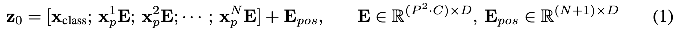 trainable linear projection를 수행합니다. projection의 output을 patch embedding 으로 참고합니다.