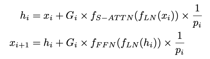 Conditional gate funciont G를 도입하여 해당 sublayer를 사용할지 말지 정한다.