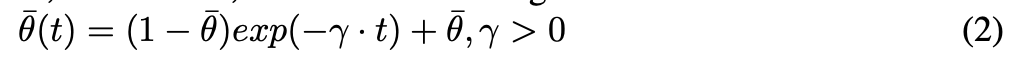 처음에 θ(0) = 1 이고 점점 줄어들게